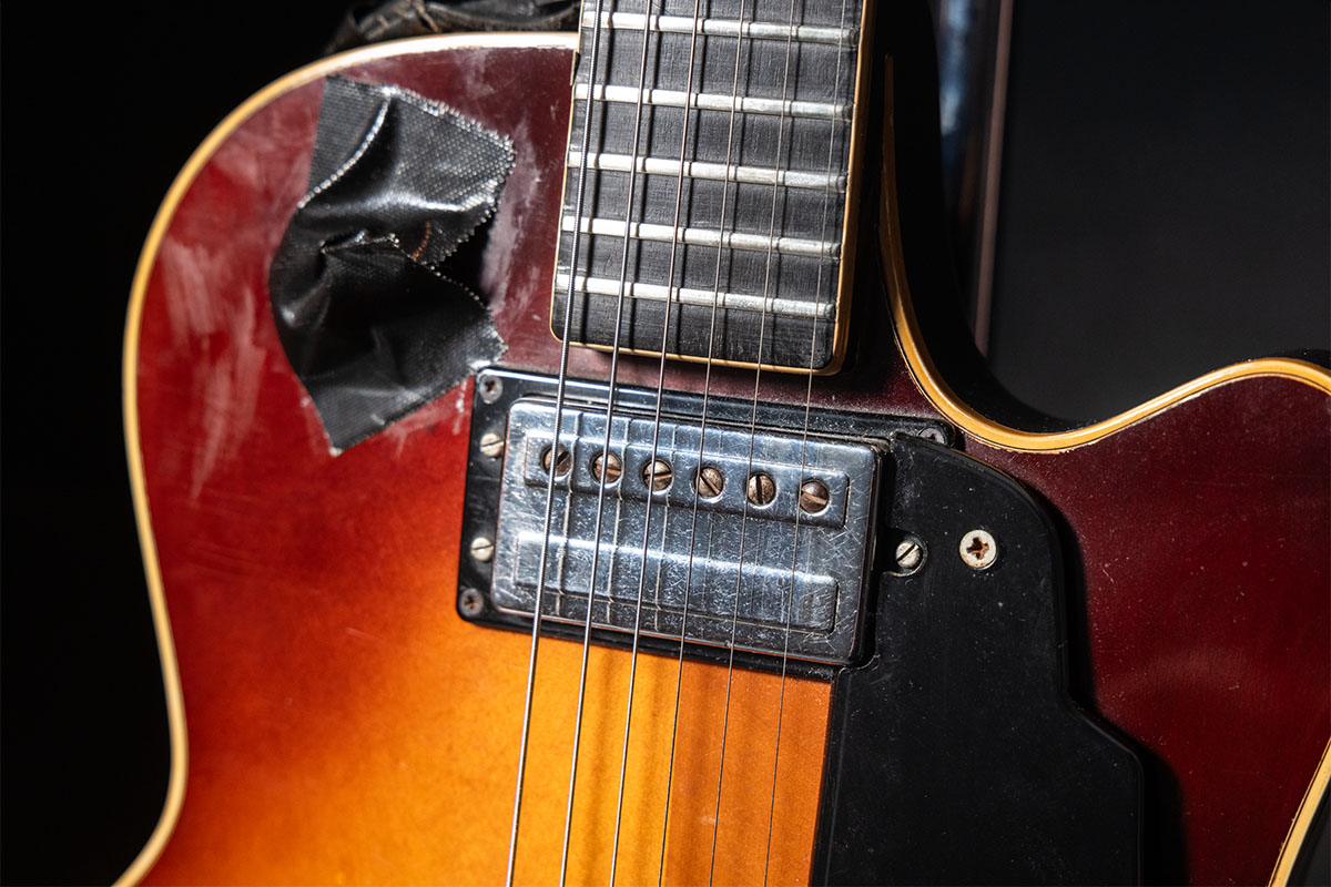 もともと“ビンテージのGuildは60年代のギブソンと引けを取らないくらい音が良い”という話を聞いており、実際に手に入れたところ、その音抜けやパワー感を気に入ったという。ピックアップ・セレクターはリアに固定されていた。