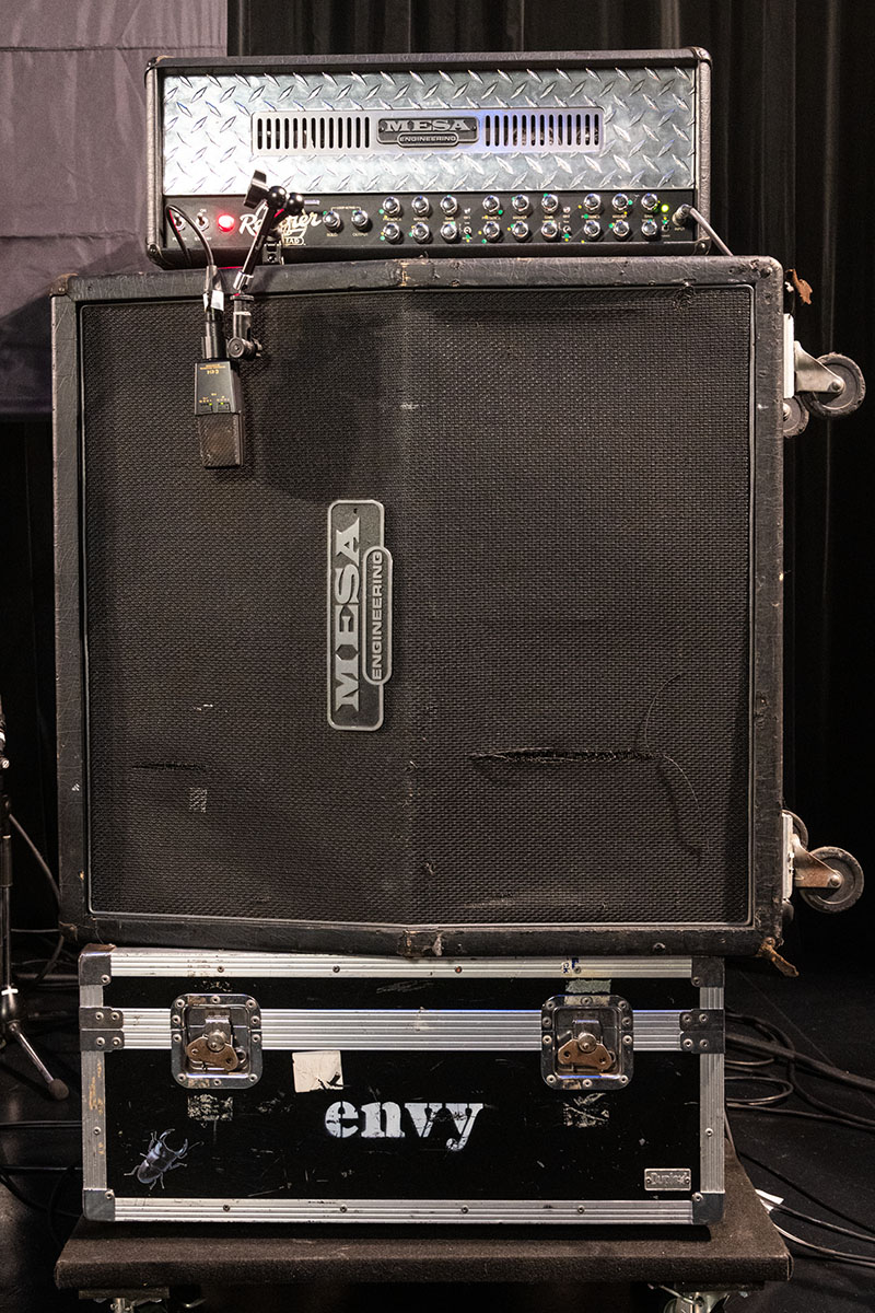 河合はenvyのサウンドメイクに欠かせないハイゲイン・アンプ、Mesa/BoogieのTriple Rectifierを長年使い続けている。独立3ch仕様のヘッドで、出力は各チャンネルごとに50Wと150Wの切り替えが可能。