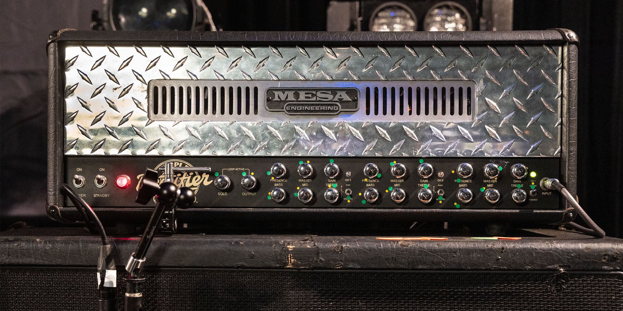 CH3もMODERNモードにセットし、各ノブはGAINが12時、MASTERが9時過ぎ、TREBLEが3時手前、MIDが9時過ぎ、BASSが8時、PRESENCEが12時過ぎ方向にセッティングされていた。