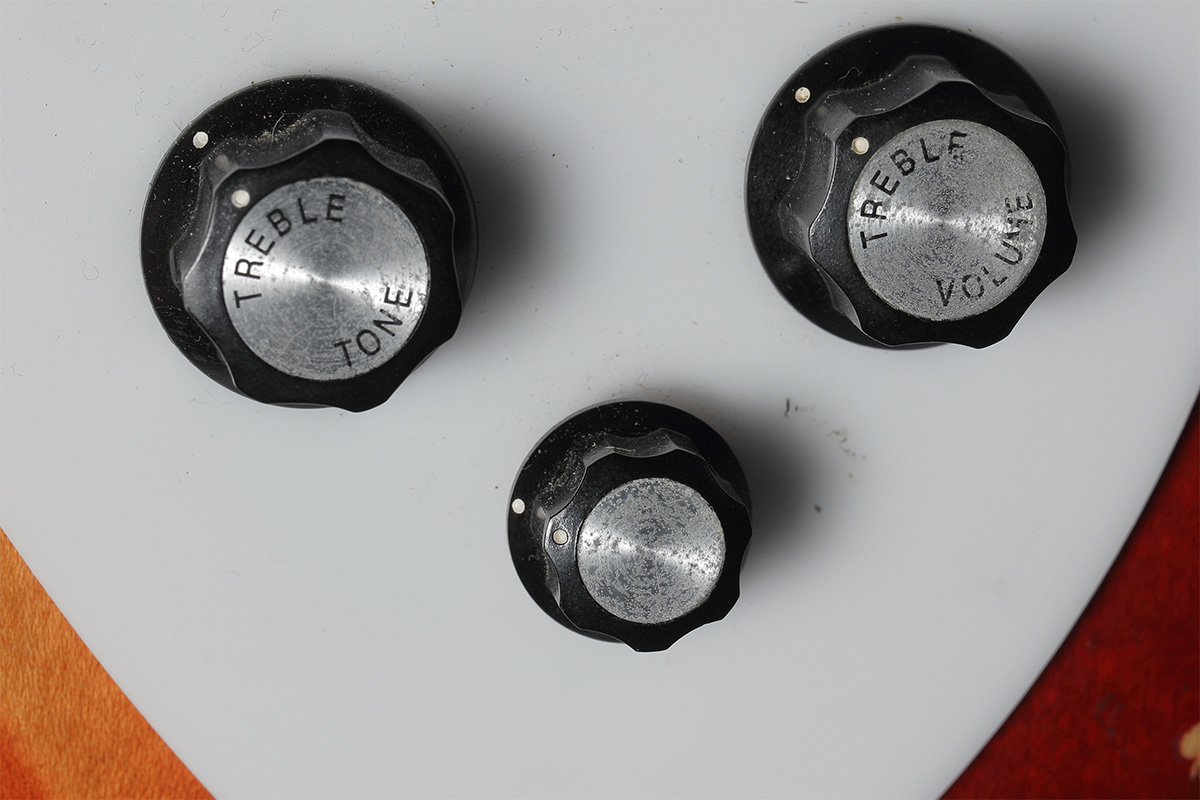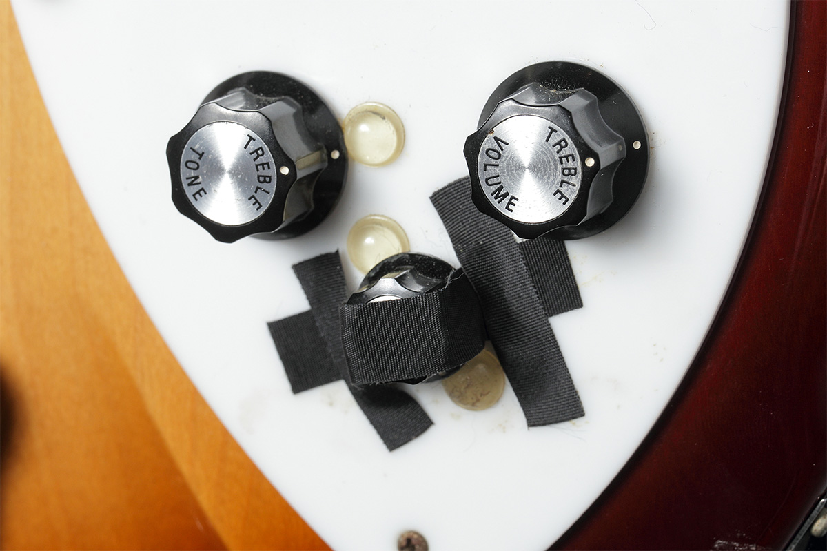 もともとリッケンバッカーはリア・ピックアップに比べてフロント・ピックアップの出力が弱く設計されているため、フロント・ピックアップの音量を調節するための“Fifthコントロール”が搭載されているが、こちらの配線もカットされている。