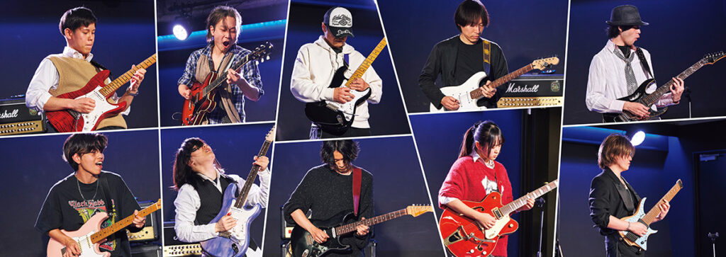 序盤から畳みかけるように弾き倒すスタイルや、ペダルを駆使して豊かな表現を得意とするギタリスト、さらにオーディエンスを意識したライブ・パフォーマンスで魅せる者など、それぞれの個性が全面に押し出されたステージが続く。