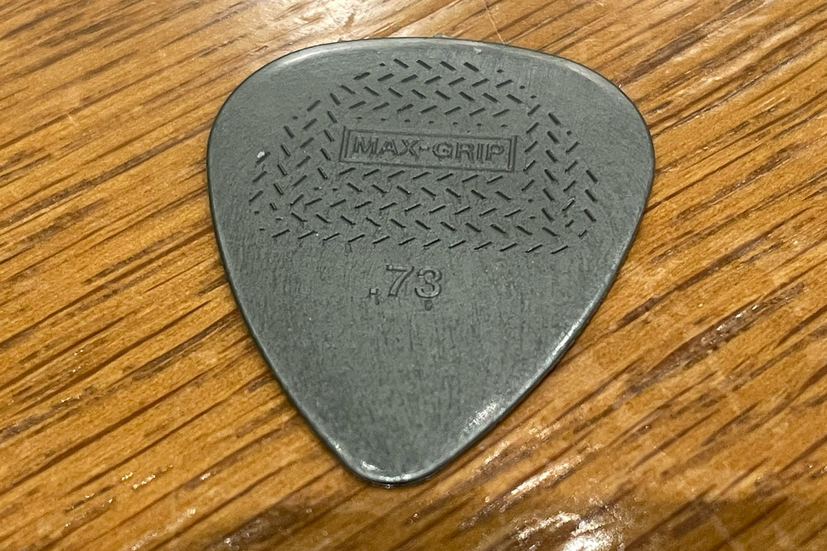 ピックはJim DunlopのMax-Grip Nylon Standard 0.73mm。ジョシュアは薄めのピックが好みとのこと。