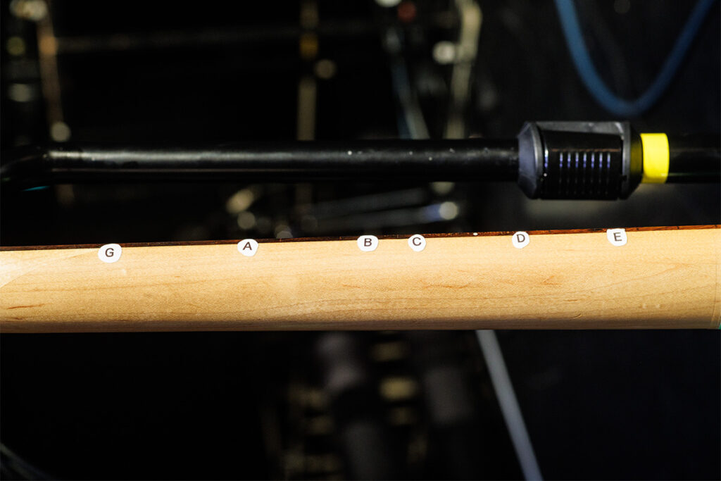 弦はErnie BallのPower Slinky #2220(.011〜.048)を使用。チューニングはレギュラーにセッティング。