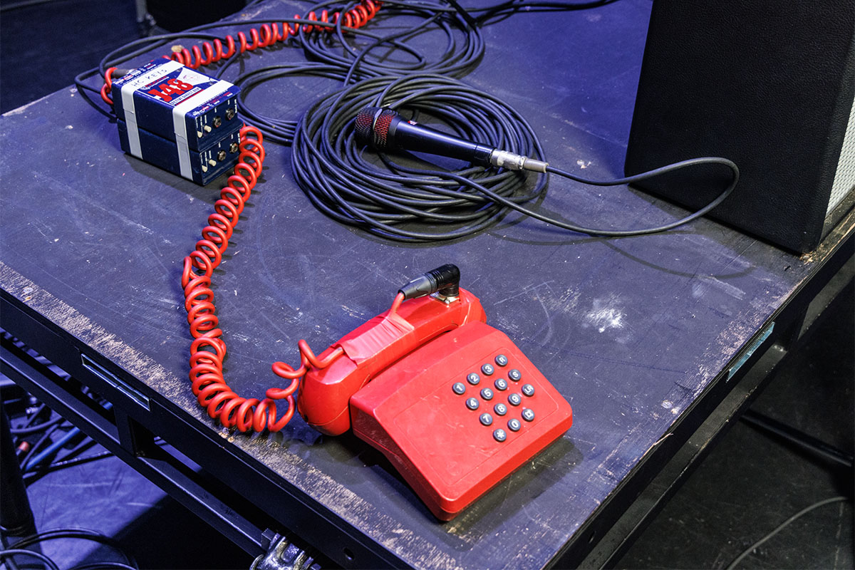 アンプの横には「CPR」の会話シーンで使用される赤い電話が置かれていた。おそらく80年代後半に製造されたBritish TelecomのTribuneというシリーズだと思われる。
