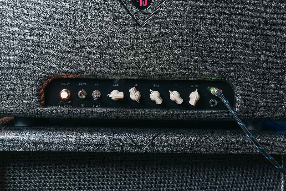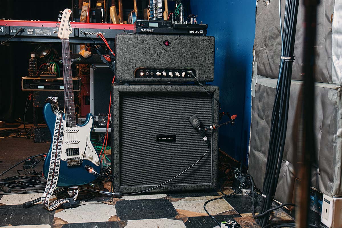 伊藤のアンプは、Divided by 13のAMW39。プリ管に12AX7を1本、パワー管にEL34を2本搭載したシングル・チャンネルのモデルで、出力は39Wながら十分なヘッドルームを備えている。キャビネットは12インチのCelestion Greenbackを2発搭載。