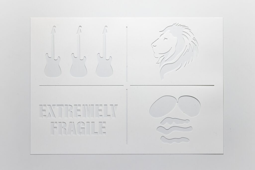 内装に豹柄をあしらった特製モールド・ケースに加え、自身で自由にカスタマイズして楽しめるツアー・ケース風のステッカーやステンシルが付属品として同梱される。