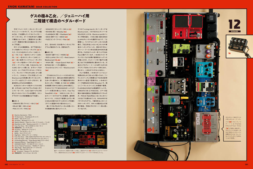 取材時に持参してくれた“ゲスの極み乙女。&ジェニーハイ”用ペダル・ボードと、indigo la End用ボードの2枚を詳細に解説。気になるエフェクターがあれば、ぜひ自身の足下に取り入れてみては?