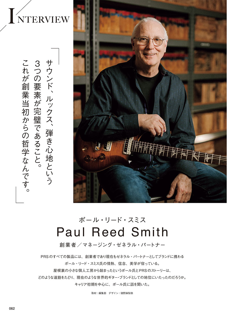 半世紀にわたる道のりにおいて、PRSが一貫してきたのは“最新モデルこそが最高傑作”であるという美学。時代ごとに傑作と呼べるギターを創造してきたにもかかわらず、決してそこに満足することなく、さらなる理想を求めて挑戦し続けているのだ。本特集ではそうした歴史を振り返りつつ、同時に現在のPRSの姿にもフォーカスを当て、この偉大なギター・ブランドの全貌に迫っていく。