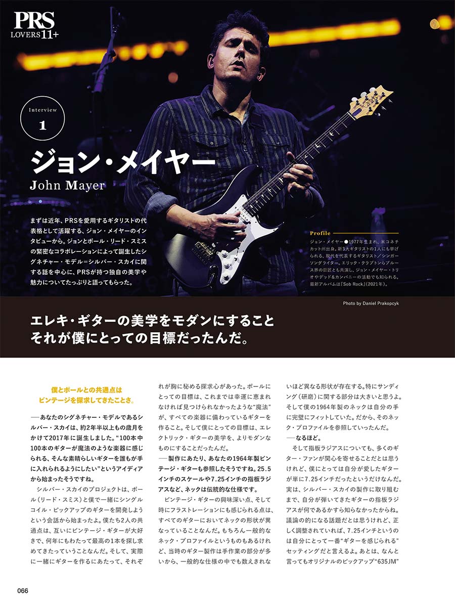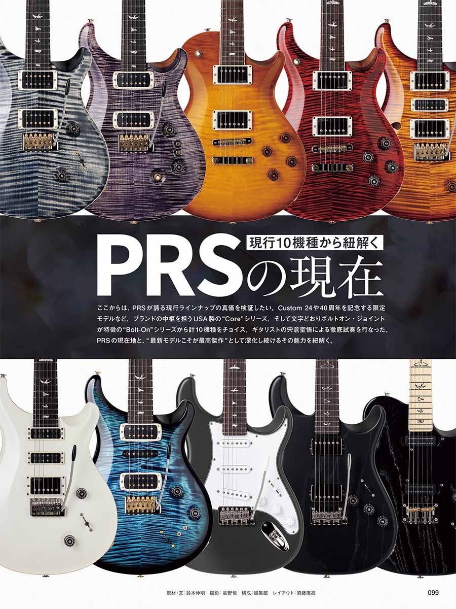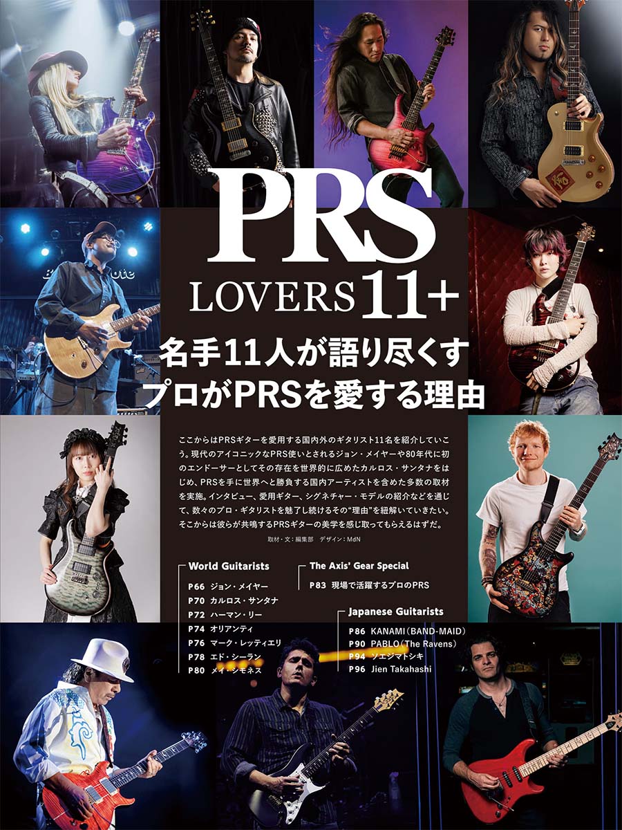 現代のアイコニックなPRS名手とされるジョン・メイヤーや80年代に初のエンドーサーとしてその存在を世界的なものに広めたカルロス・サンタナを始め、PRSを手に世界へと勝負する国内アーティストを含める多数の取材を実施。そこからは彼らが共鳴するPRSギターの美学を感じ取ってもらえるはずだ。