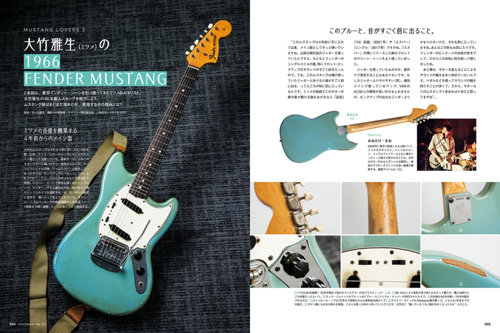 このコーナーでは、ムスタングを愛してやまないギタリストの愛器を紹介! 約20年にわたりムスタングと付き合ってきた百々和宏と、使用歴はまだ4年だが、ムスタング1本でライブ&レコーディングをこなす大竹雅生のビンテージものを掲載。使い続けるその理由とは一体?