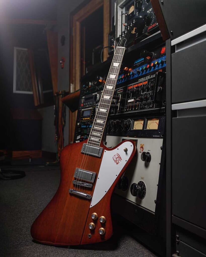 ピックアップは、製造当時の仕様に忠実なアルニコ5のファイヤーバード・ミニハムバッカーピックアップが2基。クリーンでは鐘のように鈴鳴り感あるサウンド、歪ませたときにはバンドアンサンブルでも際立つロックやブルースに最適なトーンを奏でる。