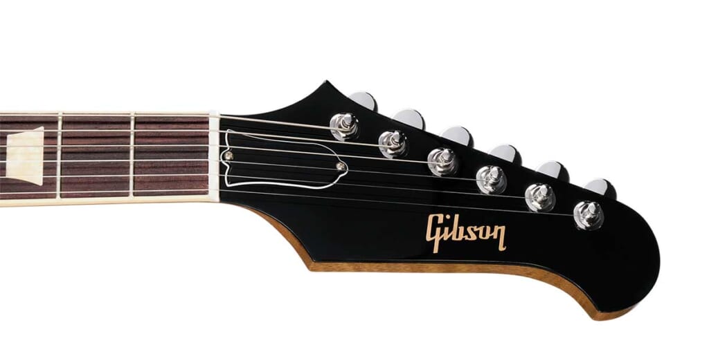 リバース・スタイルのボディは、トップに盛り上がったセンター・セクションが特徴ですが、ノン・リバース・ファイヤーバードと同様に、クラシックなギブソン・セットネック構造となっています。また、弦がネック部分からヘッドに向かって直線に配置されるプラタパス・スタイルのヘッドストックと、グローバー・ミニ・ロトマチック・チューナーを採用し、機能性とバランスを向上させています。
