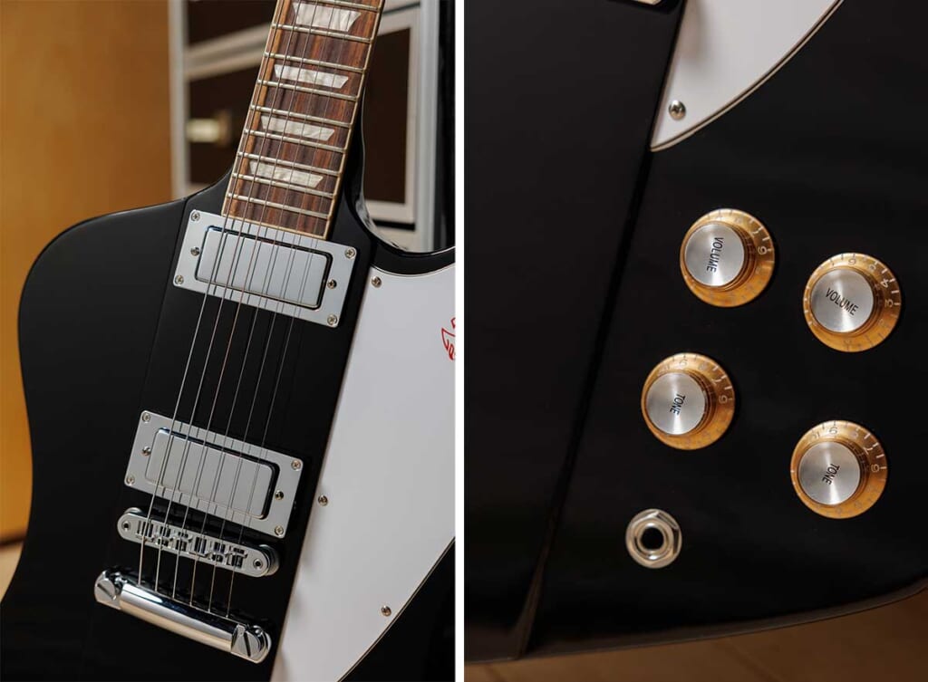 今回リイシューとなるファイヤーバード・ミニ・ハムバッキング・ピックアップは、ブラック・マウント・リングとファイヤーバード伝統のクローム・トリム・リングにマウントされており、クラシックなサウンドとルックス、そしてパフォーマンスの向上を実現しています。トリム・リングの下にマウント・リングを使用することで、ピックアップを弦と平行に保ち、出力とバランスを向上させています。ファイヤーバード・プラタパスは、歴代ファイヤーバード・モデルの中でも一番の特徴、美しさ、サウンド、演奏性 を詰め込んだ「ベスト・オブ・ファイヤーバード 」の仕様を備えていると思います。