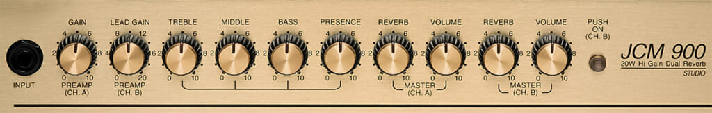 今回登場したStudio 900は、1990年代のマーシャルを代表するJCM900のサウンドを、ライブ、スタジオ、ホームユースというあらゆるシーンで活用することを想定して開発されたモデルで、これまでのStudioシリーズの製品と同じくヘッド(SN20H)とコンボ(SN20C)の2タイプが用意されている。