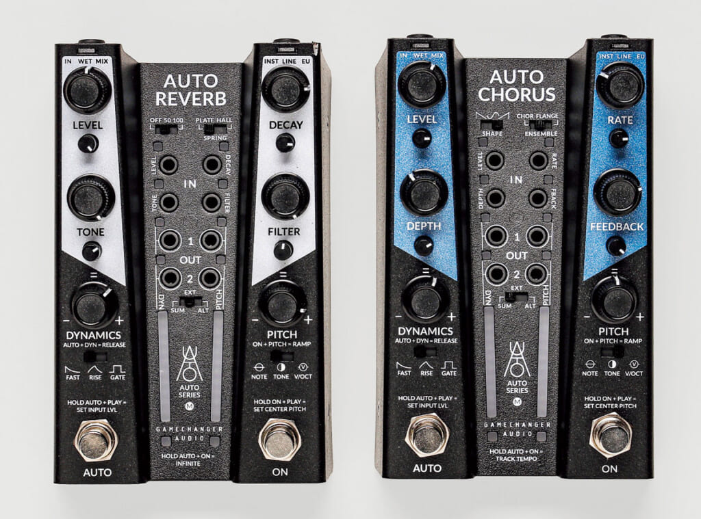 ピアノのペダルをモチーフにしたPLUS PEDALや、キセノン管内のプラズマ放電を駆使したPLASMA Pedalなど、ユニークな製品で名を轟かすGamechanger Audioから、エフェクト・ペダルとモジュラー・シンセサイザーの世界観を融合した新モデル3機種が同時発売された。