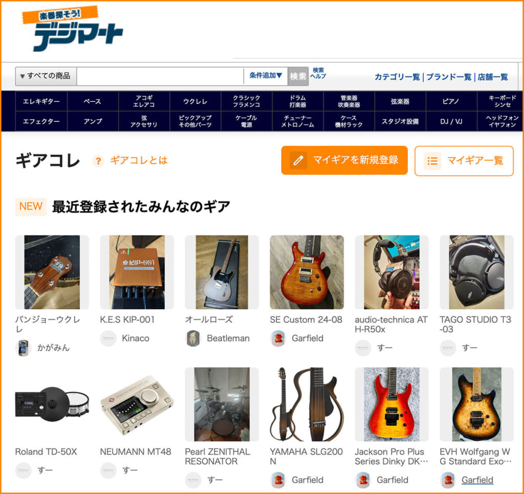 その楽器のスペックだけではなく、使用者の“実感”を知ることで、さらに理解を深められること間違いなしですね。ではさっそくギアコレにマイギア登録をしてみましょう!