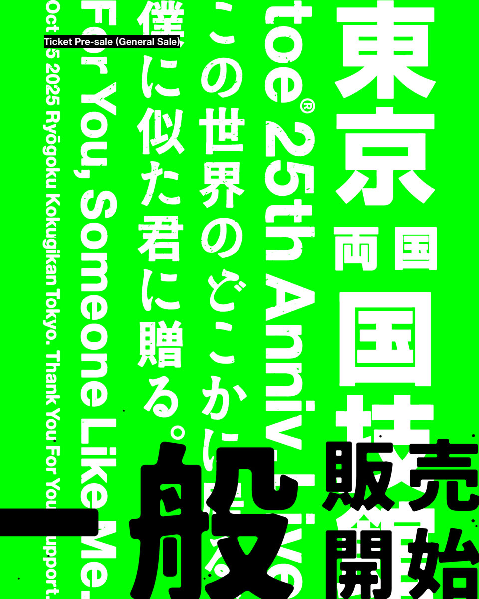 2025年10月25日(土)に開催される、toeの結成25周年記念・両国国技館単独公演の特設サイトがオープン! 2025年10月25日(土)に開催される、toeの結成25周年記念・両国国技館単独公演の特設サイトがオープン!