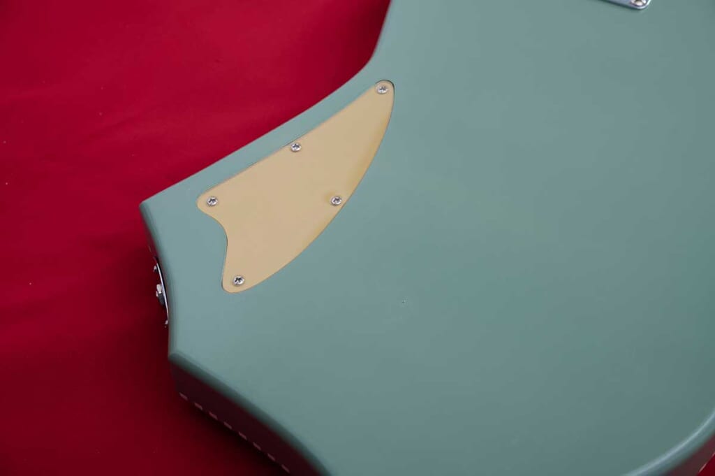 薄めの40mm厚ボディにはアルダー材が使用され、塗装は50年代に多く見られたニトロセルロースラッカー。ピックアップはゴールドフォイル・タイプのミニハムバッカー2つ、ブリッジにはJM型トレモロ、ペグはGOTOHのマグナムロックを採用している。