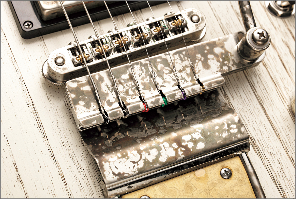 ピックアップなどのパーツ類も自社で手がけ、金属パーツに見られる独特の表面仕上げも職人の手によって行なわれる。