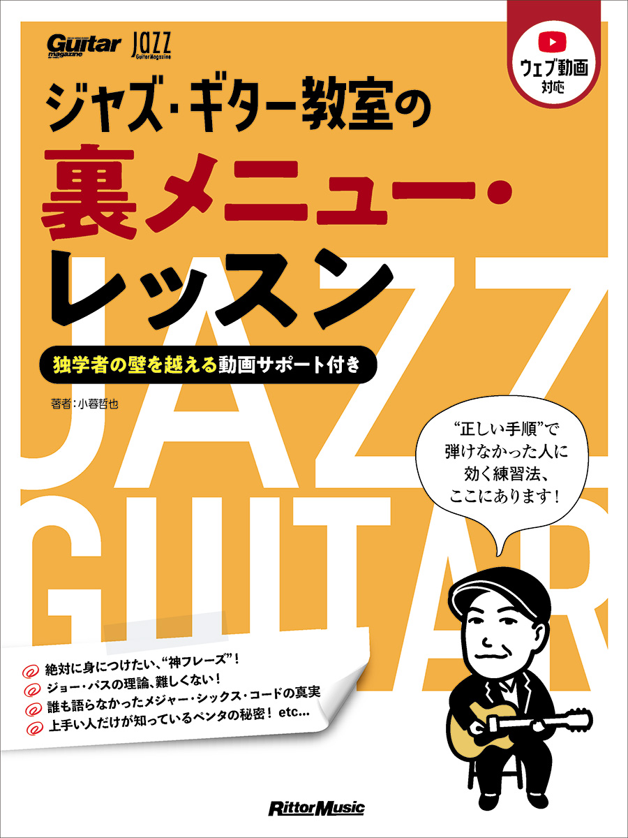 著者は、登録者数が15,000人を超えるYouTubeチャンネルの『ジャズギターレッスンTV』でも知られるギタリストの小暮哲也。