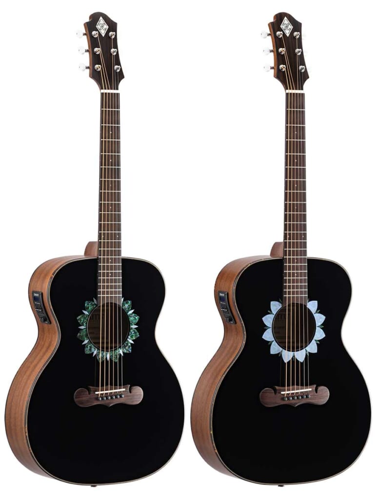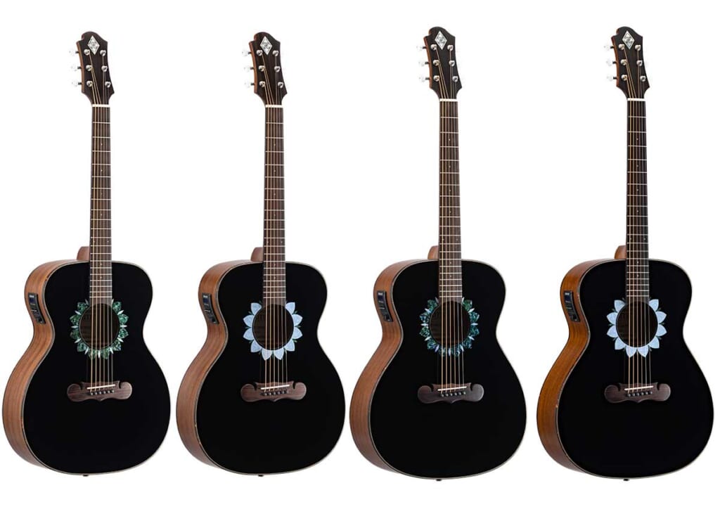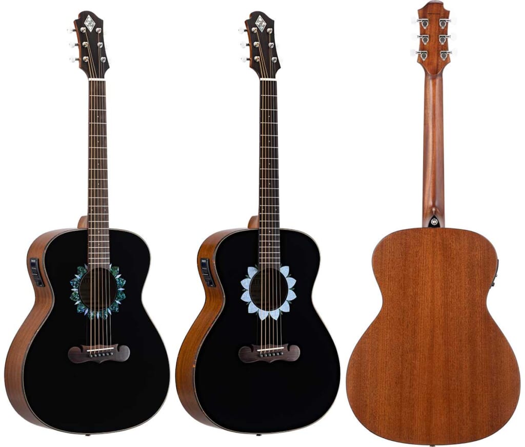 各モデルとも、アンダーサドル・ピックアップと4バンドEQ、クロマティック・チューナー機能を持ったプリアンプを搭載し、アンプなどの外部機器に出力可能。それぞれアバロン柄とマザー・オブ・パール柄のロゼッタがラインアップされている。