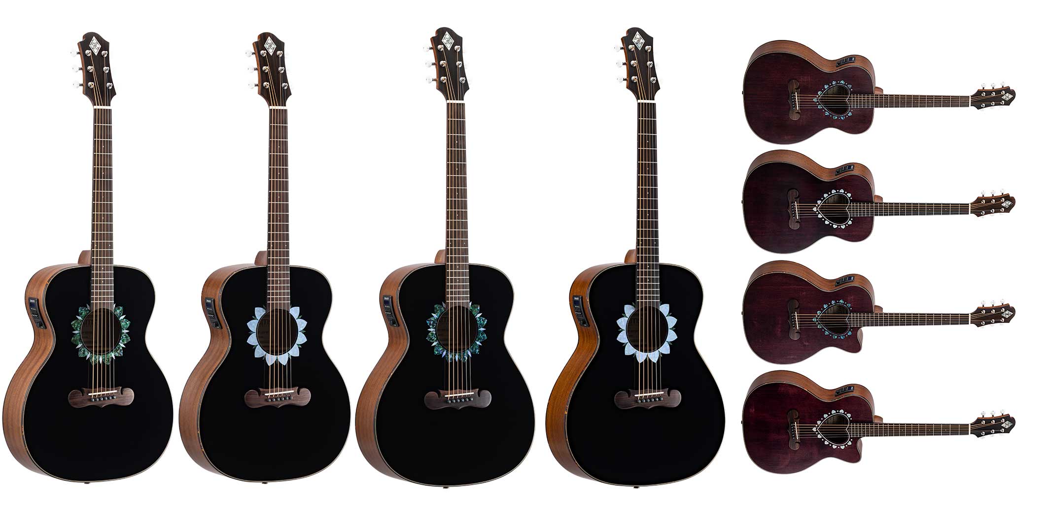 各モデルとも、アンダーサドル・ピックアップと4バンドEQ、クロマティック・チューナー機能を持ったプリアンプを搭載し、アンプなどの外部機器に出力可能。それぞれアバロン柄とマザー・オブ・パール柄のロゼッタがラインアップされている。