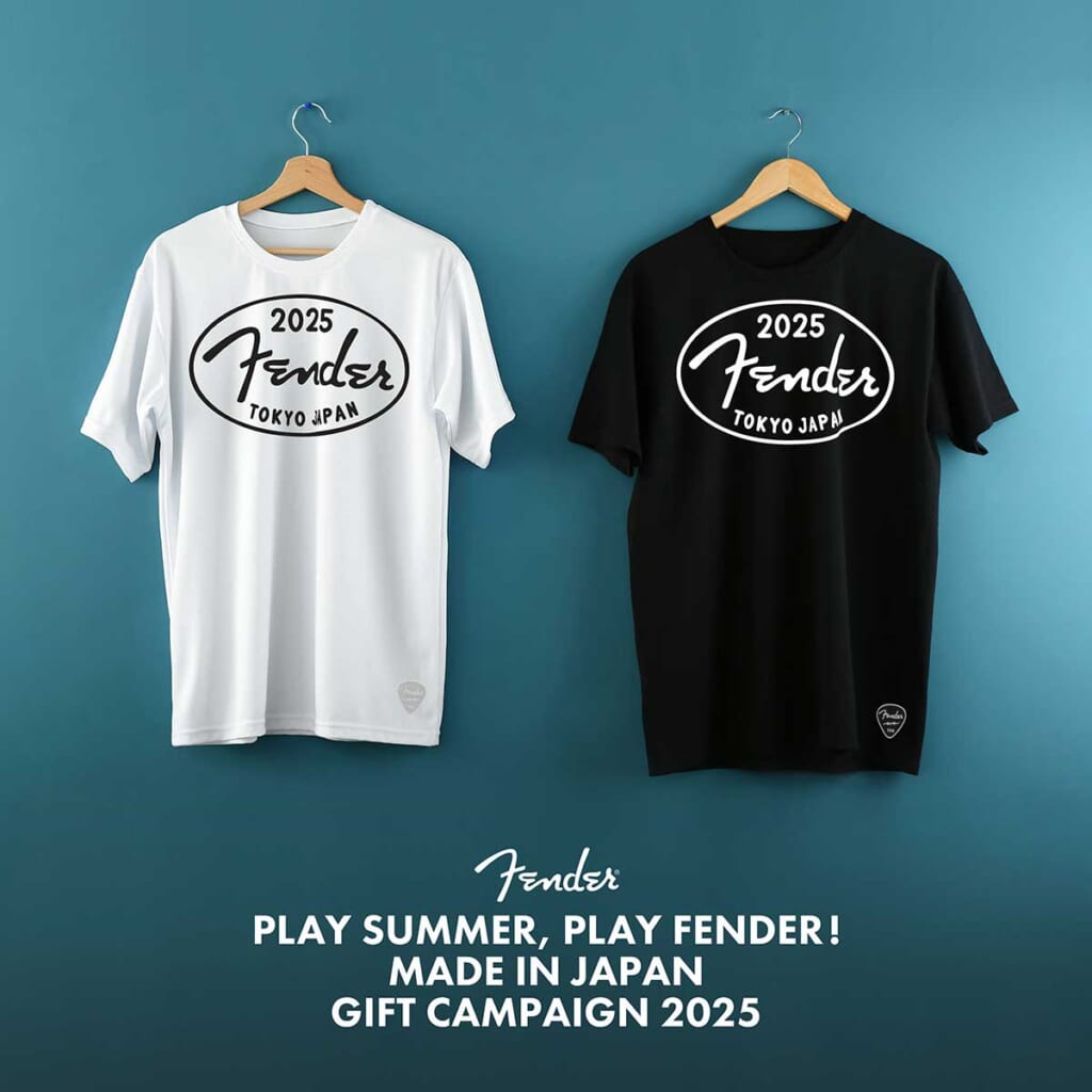 東京・原宿のフェンダー旗艦店Fender Flagship Tokyoでは、⽇本製ギターまたはベースの購⼊者を対象に先着で非売品のオリジナルTシャツをプレゼントする『PLAY SUMMER, PLAY FENDER! MADE IN JAPAN GIFT CAMPAIGN 2025』を実施している。