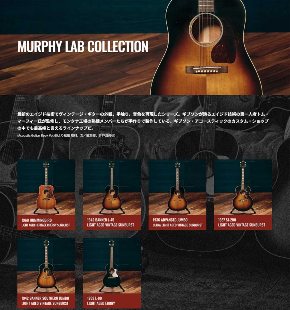 また、サイトにはマーフィ・ラボ・モデルをはじめとする「カスタム・ショップ」の各モデルが、スペック紹介と豊富な写真でまとめられていることにも注目だ。